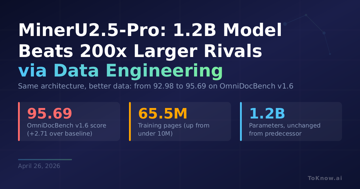OpenDataLab’s 1.2B-parameter document parser scores 95.69 on OmniDocBench v1.6, outperforming models with 200x more parameters, purely through data engineering.